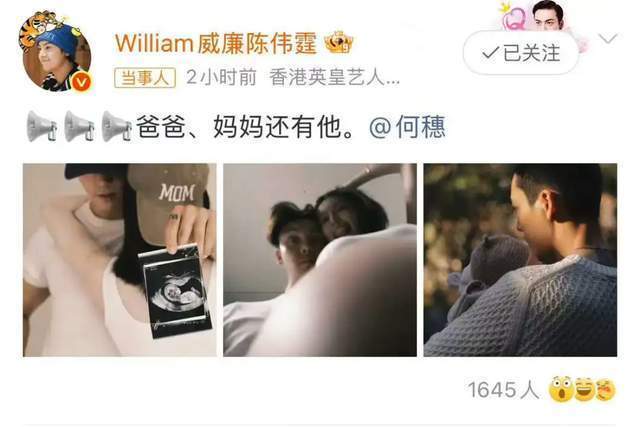 紧接着便是突然官宣生子的陈伟霆,很多观众还没有从他饰演的“好命哥”中走出来,便直接跨过结婚一步到位官宣生子,和何穗的喜讯又掀起一波八卦的狂潮。